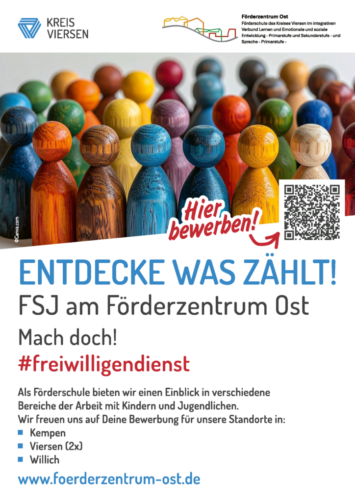Als Förderschule bieten wir einen Einblick in verschiedene Bereiche der Arbeit mit Kindern und Jugendlichen. Wir unterrichten Kinder sowohl in der Primar- als auch in der Sekundarstufe I. Vormittags Unterricht, nachmittags Offene Ganztagsschule. Lernen und Freizeitbereich werden hier eng miteinander verzahnt. Und du kannst Einblick bekommen, in dieses ganz besondere FSJ! mach doch!