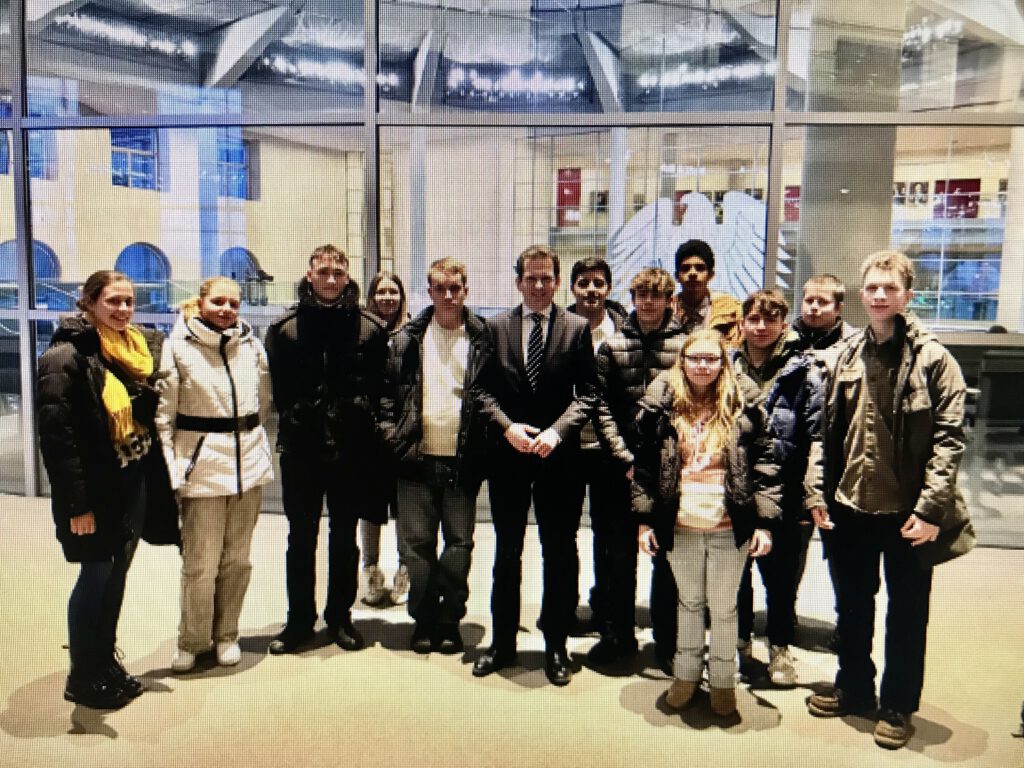 Wir, die Klasse O4 von Frau Beck, waren in der Woche vom 26. bis 30. Januar 2026 in Berlin auf Klassenfahrt. Besonders gefreut haben wir uns auf den Besuch des Deutschen Bundestages. Dort haben wir nach einem leckeren Mittagessen und dem Besuch einer Plenarsitzung den Abgeordneten des Kreises Viersen, Herrn Dr. Plum, getroffen. Wir hatten uns vorher im Politikunterricht viele Fragen überlegt, die sowohl seinen politischen Werdegang als auch die aktuelle Innen- und Außenpolitik Deutschlands betrafen. Obwohl Herr Dr. Plum nicht viel Zeit hatte, wurden all unsere Fragen ausführlich beantwortet. Und nachdem wir jetzt sogar wissen, wie viel Geld ein Abgeordneter so verdient, wollen einige von uns ihre beruflichen Pläne auch nochmal überdenken!