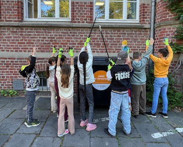 Auch in diesem Jahr war der Standort Gereonstraße wieder beim World Clean Up Day am 19.09.2025 dabei! In den Tagen davor beschäftigten wir uns im Unterricht mit dem Buch „Lass uns ein gutes Zuhause finden“. In dem Buch wird von heimischen Tieren erzählt, die durch den „Wilden Müll“, wie z. B. Zigarettenkippen oder Plastikbecher gefährdet sind und sich auf die Suche nach einem sauberen Ort machen. Hochmotiviert gingen die Kinder los, um den „Wilden Müll“ zu sammeln und so den Tieren zu helfen. Mit 2 Standorten wurde rund um die Schule Müll gesammelt. Vor allem Plastikbecher, Zigaretten, Glasflaschen und Plastikfolien wurden gefunden und in großen Säcken eingesammelt. Die Bereitstellung von Handschuhen und Zangen sowie die abschließende Entsorgung der Abfälle wurde vom Abfallbetrieb des Kreises Viersen übernommen. Zum Abschluss wurde jedem Kind eine persönliche Urkunde und unserer Schule eine Teilnehmerurkunde von den Abfallbetrieben überreicht.